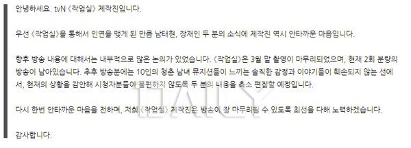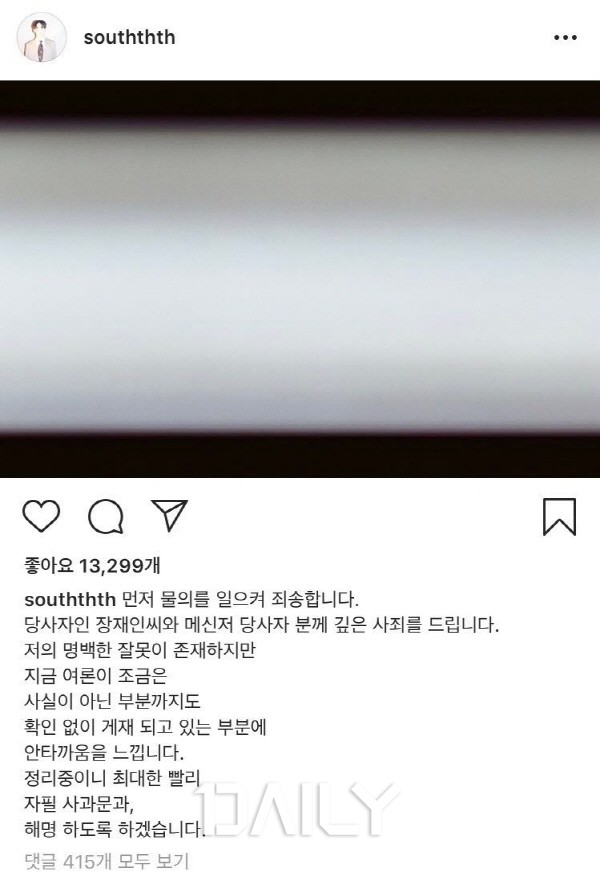 7ÀÏ »õº®ºÎÅÍ À̾îÁø Æø·Î·Î ÀÎÇØ ³²ÅÂÇöÀ» ÇâÇÑ ºñ³ÀÇ ¸ñ¼Ò¸®°¡ »ç±×¶óµéÁö ¾Ê°í ÀÖ´Ù. ÀÌ¿¡ ³²ÅÂÇöÀº ħ¹¬À¸·Î ÀϰüÇßÀ¸³ª ¿ÀÈÄ 3½Ã 30ºÐ °æ ÀÚ½ÅÀÇ SNS °èÁ¤¿¡ "¹®ÀǸ¦ ÀÏÀ¸ÄÑ Á˼ÛÇÕ´Ï´Ù"¶ó¸ç óÀ½À¸·Î ÀÔÀåÀ» ´ãÀº °Ô½Ã±ÛÀ» ¾÷·ÎµåÇß´Ù. ÇØ´ç °Ô½Ã±Û¿¡¼ ³²ÅÂÇöÀº ÀÚ½ÅÀÇ À߸øÀ» ÀÎÁ¤Çϸ鼵µ »ç½Ç È®ÀÎ ¾øÀÌ °ÔÀç µÇ°í ÀÖ´Â ¼Ò½Äµé¿¡ À¯°¨À» Ç¥ÇØ ¾ï¿ïÇÑ ºÎºÐÀÌ ÀÖÀ½À» µå·¯³Â´Ù. ³²ÅÂÇöÀº ÀÌ¾î »óȲÀ» Á¤¸®ÇÑ ÈÄ¿¡ ÀÚÇÊ »ç°ú¹®°ú ÇØ¸í¹®À» ¾÷·Îµå ÇÏ°Ú´Ù°í ¹àÈù »óȲÀÌ´Ù.