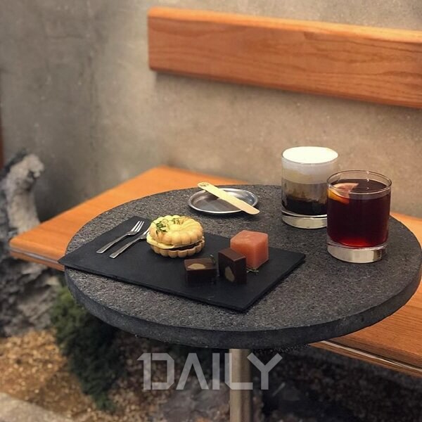 °ñ¸ñ ¾ÈÂÊ ±í¼÷ÀÌ ÀÚ¸®ÇÑ Ä«Æä´Â Á¤°¥Çϸ鼵µ ¸ð´øÇÑ ´À³¦ÀÌ °¡µæÇØ Çö´ë½ÄÀ¸·Î ÀçÇØ¼®ÇÑ ¾ç°»°ú Àß ¾î¿ï¸®´Â ºÐÀ§±â´Ù. ¿µ·ÕÇÑ ºû±òÀÇ ¼öÁ¦ ¾ç°»Àº ±âº» ÅëÆÏºÎÅÍ ±×¸°Æ¼ÃÊÄݸ´, ÈæÀÓÀÚ, À¯ÀÚ¹«È°ú±îÁö ³× Á¾·ù°¡ ÀÖ´Ù. ¹ÝÁú¹ÝÁúÇÑ ´ë¸®¼® °°Àº Ç¥¸éÀ» »Ë³»´Â ¾ç°»Àº µÎ °¡Áö »öÀÌ ±×¶óµ¥À̼Çó·³ ¿À¹¦ÇÏ°Ô ¼¯¿© ÀÖ¾î ¾ÆÁÖ µ¶Æ¯ÇÏ¸ç ´Ü´ÜÇÏ°í ²Ù´öÇÑ Áú°¨ÀÌ´Ù. °úÇÏ°Ô ´ÞÁö ¾ÊÀº ¸ÀÀÌ ÀÚ²Ù ¼ÕÀÌ °£´Ù. ¸ð³ªÄ«´Â ¾Ó¹öÅÍ¿Í ¾ÆÀ̽ºÅ©¸² Áß ¿øÇÏ´Â ÅäÇÎÀ» ¼±ÅÃÇÒ ¼ö ÀÖ´Ù.