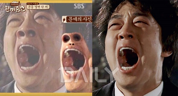 ¿ô±â±â·Î À¯¸íÇÑ ¹æ¼ÛÀÎ È«Áø°æ¿¡°Ôµµ À¯¸í ©¹æÀÌ Á¸ÀçÇÑ´Ù. ±×³à°¡ Áö±ÝÀº Á¾¿µµÈ ¿¹´É ÇÁ·Î±×·¥ÀÎ MBCÀÇ <³î·¯¿Í>¿¡ Ã⿬ÇßÀ» ´ç½Ã »ý¼ºµÈ ©ÀÌ´Ù. ÇØ´ç Àå¸éÀº ÀÚ½ÅÀÌ ÂïÀº Ⱥ¸¿¡ ´ëÇØ ¼³¸íÇÏ´ø È«Áø°æÀÌ, VCR ȸé Çѱ¸¼®¿¡ ±â¹¦ÇÑ ³²ÀÚÀÇ ¾ó±¼À» Æ÷ÂøÇϰí´Â ±ô¦ ³î¶ó¸é¼ ¡°¾î¸Ó Àú°Å ¹¹¾ß?¡±¶ó°í ¸»ÇÏ´Â ¼ø°£À» Æ÷ÂøÇÑ °ÍÀ¸·Î, Áø½ÉÀ¸·Î ³î¶õ µíÇÑ È«Áø°æÀÇ ¸»Åõ°¡ ¿ôÀ½ Æ÷ÀÎÆ®ÀÌ´Ù.