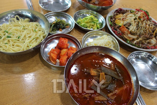 ĮĮÇÑ À°°³Àå°ú Ä®±¹¼ö¸¦ ÇÔ²² Áñ±æ ¼ö ÀÖ´Â °÷À¸·Î À°°³Àå ±¹¹°°ú Ä®±¹¼ö ¸é, ¹äÀÌ µû·Î Á¦°øµÈ´Ù. Ä¿´Ù¶þ°Ô ½ã ´ëÆÄ¿Í ¾çÁö °í±â µîÀÌ µé¾î°£ À°°³ÀåÀº ¸ÅÄÞÇÏ¸é¼ °³¿îÇÑ ¸ÀÀÌ¸ç ¸¹ÀÌ ¸ÊÁö ¾Ê´Ù. Â̱êÇÑ ¸é¹ßÀ» À°°³Àå¿¡ ³Ö¾î ¸ÔÀº µÚ ¹ä±îÁö ¸»¾Æ¼ ¸Ô°í ³ª¸é ¾ÆÁÖ ¹èºÎ¸¥ ½Ä»ç¸¦ ÇÒ ¼ö ÀÖÀ¸¸ç °£´ÜÇÏÁö¸¸ ¹ä°ú ÇÔ²² ¸Ô±â ÁÁÀº ¹ÝÂùµµ ¸î °¡Áö°¡ ÇÔ²² ³ª¿Â´Ù. À°°³Àå Ä®±¹¼ö ¿Ü¿¡´Â Â÷µ¹¹ÚÀÌ¿Í °üÀÚ, ¸íÀ̳ª¹° µîÀ» ÇÔ²² ¸Ô´Â Â÷µ¹¹ÚÀÌ»çÇÕ°ú Â÷µ¹¼÷ÁÖººÀ½µµ ÀÖ´Ù.