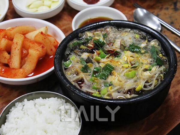 ½Ã·¡±â°¡ µé¾î°£ ¼ø´ë±¹ÀÌ À¯¸íÇÑ °÷À¸·Î ¸¹Àº »ç¶÷µéÀÌ ¸ÀÁýÀ¸·Î ¼Õ²Å´Â °÷ÀÌ´Ù. »ï´ë° Àå»ç¸¦ À̾°í ÀÖ´Â À̰÷Àº ÅäÁ¾¼ø´ë¿Í ½Ã·¡±â°¡ µë»Ò µé¾îÀִ ǪÁüÇÑ ¼ø´ë±¹ÀÌ °¡Àå Àαâ ÀÖ´Ù. ¼ø´ë±¹À» ÁÖ¹®ÇÏ¸é ±è°ú ºÎÃß¹«Ä§, µÅÁö °£ÀÌ ÇÔ²² Á¦°øµÇ¸ç °íÃß¿Í °¢Á¾ ¾ç³äÀ» ³Ö¾î ¸¸µç °£ÀåÀº ±¹¹äÀÇ °Ç´õ±â¸¦ Âï¾î ¸ÔÀ¸¸é °¨Ä¥¸ÀÀÌ ÀÖ´Ù. ÁøÇÏ°í ´ã¹éÇÑ ±¹¹°Àº Ç« ÀÍ¾î ¸Å¿ì ºÎµå·¯¿î ½Ã·¡±â¿Í µé±ú°¡·ç µî°ú Àß ¾î¿ï¸®¸ç ¼ø´ë¿Í °¢Á¾ ³»ÀåÀÌ °¡µæÇØ ¸Å¿ì ǪÁüÇÏ´Ù.