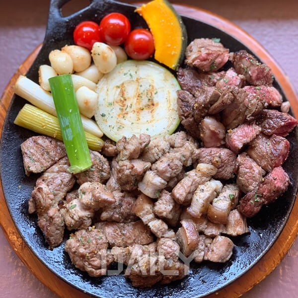 µ¹ÆÇ¿¡ ±¸¿ö ¸Ô´Â °í±â¿Í °¢Á¾ Àü°ñÀÌ ÀÖ´Â ºóƼÁöÇϸ鼵µ ¼¼·ÃµÈ ºÐÀ§±âÀÇ ½Ä´çÀÌ´Ù. ȲÁ¦´Á°£»ì°ú ºÎä»ì, ¼Ò»ï°ã, ¼ÒºÒ°í±â µîÀÇ ¸Þ´º¿Í ¼Ò°í±â¹ö¼¸µÈÀåÀü°ñ, ¼Ò°í±â°íÃßÀåÀü°ñ, ÇØ¹°µÈÀåÀü°ñ µîÀÌ ÀÖ´Ù. °í±â´Â ä¼Ò¿Í ÇÔ²² µ¹ÆÇ¿¡ º¸±â ÁÁ°Ô ¼¼ÆÃµÈ »óÅ·ΠÁ¦°øµÇ¸ç ¸íÀ̳ª¹°°ú À徯Âî µîÀÇ ¹ÝÂùµµ ¹ö¸± °ÍÀÌ ¾ø´Ù. °í±â±¸ÀÌ Àü¹®Á¡ÀÌÁö¸¸ ¿¹»Û Ç÷¹ÀÌÆÃÀ¸·Î ½ºÅ×ÀÌÅ©¸¦ ¸Ô´Â µíÇÑ ±âºÐÀ» Áñ±æ ¼ö ÀÖ°í Àü°ñ Á¾·ùµµ ´Ù¾çÇØ ÄÚ½ºÃ³·³ ǪÁüÇÏ°í µçµçÇÏ°Ô ¸ÔÀ» ¼ö ÀÖ´Ù.