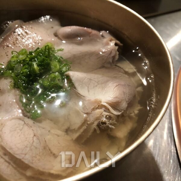 »Ç¿À¾á »ö±òÀÇ µÅÁö±¹¹ä°ú´Â ¿ÏÀüÈ÷ ´Ù¸¥ À½½ÄÀÎ ¸¼Àº ±¹¹°ÀÇ µÅÁö°õÅÁÀ» ¸Àº¼ ¼ö ÀÖ´Â °÷ÀÌ´Ù. ¸ð´øÇÔ°ú ÀüÅëÀûÀÎ ´À³¦À» µ¿½Ã¿¡ °®Ãá À̰÷Àº µÅÁö°õÅÁÀ» ´ÜÀϸ޴º·Î Çϰí ÀÖÀ¸¸ç À½½ÄÀº Á¤°¥ÇØ º¸ÀÌ´Â ³ò±×¸©¿¡ ´ã°Ü Á¦°øµÈ´Ù. ÈæµÅÁöÀÇ ¾Õ´Ù¸®¿Í µÞ´Ù¸® »ìÀ» ÀÌ¿ëÇØ ¸¸µé¾ú´Ù´Â À°¼ö´Â Åõ¸íÇÒ Á¤µµ·Î ¸¼À¸¸ç ºÎµå·´°í ¾ãÀº »ìÄڱ⵵ µë»Ò µé¾îÀÖ´Ù. ÀÚ±ØÀûÀÌÁö ¾Ê°í »ï»ïÇÑ ±¹¹°°ú Àâ³» ¾ø´Â °í±â·Î ÀÌ·ïÁ® ÀÖ¾î µÅÁö±¹¹äÀÌ ºÎ´ã½º·¯¿î »ç¶÷µéµµ ºñ±³Àû ¹«³ÇÏ°Ô ¸ÔÀ» ¼ö ÀÖ´Â ¸ÀÀÌ´Ù.