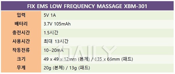 º»Ã¼¿Í ÆÐµå°¡ ÀÚ¼®ÇüÀ¸·Î ¼³°èµÇ¾î ÀÖ¾î ¼Õ½±°Ô Å»ºÎÂø °¡´ÉÇÑ ÇȽº EMS ÀúÁÖÆÄ ¸¶»çÁö±â´Â ȣȯ¼ºÀÌ ³ôÀº ¸¶ÀÌÅ©·Î 5ÇÉ ÃæÀü±â¸¦ ÅëÇØ ¹èÅ͸®¸¦ ÃæÀüÇÒ ¼ö ÀÖ´Ù. ±â±â ÀÚü¿¡´Â ¹«·Á 105mAhÀÇ ´ë¿ë·® ¸®Æ¬ Æú¸®¸Ó ¹èÅ͸®°¡ žÀçµÇ¾î ÀÖ¾î 1½Ã°£ 30ºÐÀÇ ÃæÀü¸¸À¸·Î ÃÖ´ë 13½Ã°£±îÁö ¿¬¼Ó »ç¿ëÀÌ °¡´ÉÇØ Áý»Ó¸¸ ¾Æ´Ï¶ó »ç¹«½ÇÀ» ºñ·ÔÇÑ ´Ù¾çÇÑ ¿ÜºÎ °ø°£¿¡¼µµ ¹èÅ͸® ¹æÀüÀÇ ¿°·Á ¾øÀÌ »ç¿ëÇÒ ¼ö ÀÖ´Ù.
