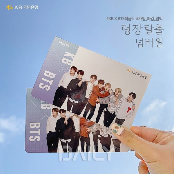 KB±¹¹ÎÀºÇàÀº ¹æÅº¼Ò³â´ÜÀ» ¸ðµ¨·Î ±â¿ëÇØ ÅëÀå, üũīµå, À¯½É(USIM) µî ´Ù¾çÇÑ Á¾·ùÀÇ »óǰÀ» ³»³õ¾Ò´Ù. 'KB X BTS Àû±Ý'À¸·Î 18¸¸ Á ½Å±Ô °¡ÀÔÀÚ¸¦ ¹Þ¾ÒÀ¸¸ç ¸ð¹ÙÀÏ ±ÝÀ¶ ¾Û 'KB ½ºÅ¸¹ðÅ·'³»¿¡ BTS Àü¿ë°üÀ» »ý¼ºÇÏ¿© ¹æÅº¼Ò³â´Ü µ¥ºßÀÏ, ¸â¹öµé »ýÀÏ¿¡ ±Ý¾×À» ÀÔ±ÝÇÏ¸é Æ¯º° ¿ì´ë ÀÌÀ²À» Á¦°øÇÏ´Â µî Ưº°ÇÑ Çù¾÷À» ¼±º¸¿´´Ù. ÅëÀå ¾Õ¸é¿¡ ¹æÅº¼Ò³â´Ü ¸â¹öµéÀÇ ¸ð½ÀÀ» ´ã¾Ò´Ù. ÃÖ±Ù ±¹¹ÎÀºÇàÀº ¹æÅº¼Ò³â´Ü À¯½ÉÀ» Ãâ½ÃÇß´Ù.