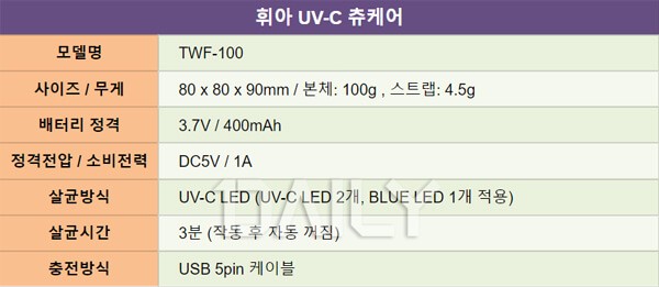 Á¦Ç° Àü¸éºÎ¿¡ À§Ä¡ÇÑ 'WHIA' ·Î°í ºÎºÐÀ» °¡º±°Ô ´©¸£µíÀÌ ¿¸é ½±°Ô ¿ÀÇÂÀÌ °¡´ÉÇÏ´Ù. »ì±ÕÀÛ¿ëÀº ¶Ñ²±À» ¿¾úÀ» ¶§ °¡Àå ¾ÈÂÊÀ¸·Î º¸ÀÌ´Â UV-C LED¸¦ ÅëÇØ ÀÌ·ïÁø´Ù. »çÁø¿¡¼µµ È®ÀÎÇÒ ¼ö ÀÖµí ÃòÄɾîÀÇ ³»ºÎ´Â ²Ï³ª ±í°í ³Ë³ËÇØ ÂÊÂÊÀÌÀÇ »çÀÌÁî¿¡ ±¸¾Ö¹ÞÁö ¾Ê°í ÀÌ¿ë °¡´ÉÇÏ´Ù. ÂÊÂÊÀ̻Ӹ¸ ¾Æ´Ï¶ó ºÎÇǰ¡ Å« Á¥º´ ²ÀÁö, ½Å»ý¾Æ Ä©¼Ö ¿ª½Ã »ì±ÕÇÒ ¼ö ÀÖ¾î Ȱ¿ë¼ºÀÌ µ¸º¸ÀδÙ.