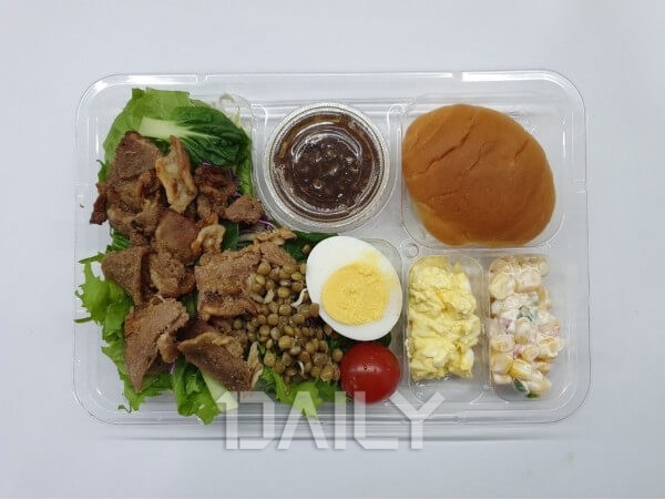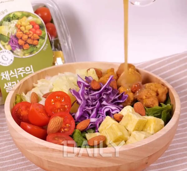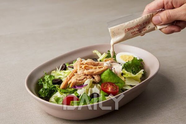 Æ÷ÀåµÈ ºñ´ÒÀ» ¶âÀ¸¸é ¶Ñ²± ¿ë±â À§¿¡ ¼Ò½º°¡ µ¿ºÀµÇ¾î ÀÖ¾î »Ñ·Á ¸ÔÀ» ¼ö ÀÖ°Ô µÇ¾îÀÖ´Ù. »ø·¯µåÀÇ ÁÖ¿ä ³»¿ë¹°Àº ´ß°í±â¿Í »îÀº °í±¸¸¶, ·»Æ¿Äá, °³¶Äá, Àû±Ù´ë, Àû¾çÆÄ, ġĿ¸®, »óÃß, ¹æ¿ïÅ丶Åä, ½ºÀ§Æ®ÄÜ µîÀ¸·Î ÀÌ·ïÁ® ÀÖ´Ù. ǪÁüÇÑ ¾çÀÓ¿¡µµ ÃÑÄ®·Î¸®´Â 325kcal¿¡ ºÒ°úÇÏ´Ù. ´ß°í±â¿Í °í±¸¸¶ µîÀ¸·Î Æ÷¸¸°¨À» ä¿ì°í ¾çÆÄ, ġĿ¸®, »óÃß·Î »ø·¯µåÀÇ ¾Æ»èÇÔÀ» Áñ±æ ¼ö ÀÖ¾î °Ç°ÇÑ ÇÑ ³¢¸¦ Áñ±â°í ½ÍÀº À̵鿡°Ô Á¦°ÝÀÌ´Ù.