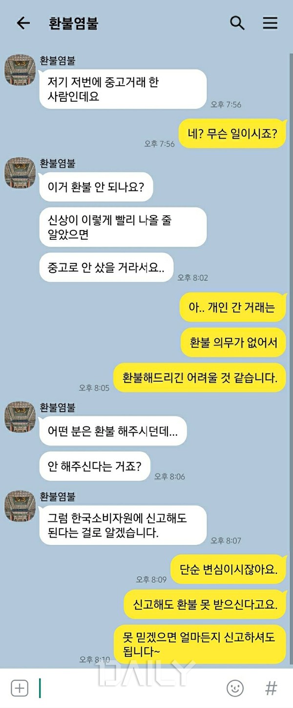 Ư¼öÇÑ »çÇ×À» Á¦¿ÜÇÑ ´ëºÎºÐÀÇ Áß°í °Å·¡´Â ȯºÒÀÇ Àǹ«°¡ ¾ø´Ù. Áß°í °Å·¡´Â °³ÀÎ °£ °Å·¡·Î, ÀüÀÚ»ó°Å·¡ µî¿¡¼ º¸ÀåÇÏ´Â ¼ÒºñÀÚ º¸È£¿¡ °üÇÑ ¹ý·ü»ó û¾à öȸ µîÀÇ Àû¿ëÀ» ¹ÞÁö ¾Ê±â ¶§¹®ÀÌ´Ù. ´Ü¼ø º¯½ÉÀ¸·Î ¸»µµ ¾È µÇ´Â Æ®ÁýÀ» ÀâÀ¸¸é¼ ȯºÒÀ» ÇØ´Þ¶ó°í ¶¼¾²´Â À¯ÇüÀº Áß°í °Å·¡¿¡ ÀÖ¾î °¡Àå ÇǰïÇÑ À¯Çü Áß Çϳª´Ù. Áß°í °Å·¡ ±¸¸ÅÀÚ°¡ ÀÏ¹Ý ÆÇ¸ÅÁ¡À̳ª ¼îÇθô·Î °£ÁÖÇÏ°í º° ÀÌÀ¯ ¾øÀÌ È¯ºÒÀ» ¿ä±¸ÇÑ´Ù¸é ȯºÒÇØÁÙ Àǹ«°¡ ¾ø´Ù°í µü Àß¶ó ¸»ÇÏ´Â ´ÜÈ£ÇÔÀÌ ÇÊ¿äÇÏ´Ù.