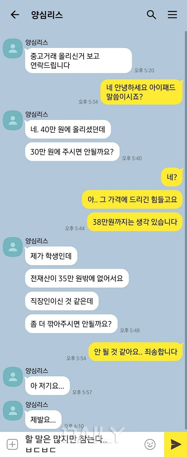 Áß°í °Å·¡¿¡¼ °¡Àå ¸¹ÀÌ º¼ ¼ö ÀÖ´Â Áø»ó À¯ÇüÀÌ´Ù. Á¶±ÝÀÌ¶óµµ Àú·ÅÇÑ °¡°ÝÀ¸·Î ÁÁÀº ¹°°ÇÀ» ¹Þ°í ½ÍÀº ½É¸®´Â ÃæºÐÈ÷ ÀÌÇØÇÏÁö¸¸, ¿Ã¸° °¡°Ý¿¡ ºñÇØ ¸»µµ ¾È µÇ´Â °¡°ÝÀ» Á¦½ÃÇÏ¸ç ±ð¾Æ´Þ¶ó°í ¿äûÇÏ´Â °É º¸¸é Àå³ÀÎÁö, ¾Æ´Ï¸é Á¤¸» Áø½ÉÀ¸·Î ÇÏ´Â ¸»ÀÎÁö ÀǽÉÀÌ µÉ Á¤µµ´Ù. ¾Æ¹«¸® µ¿Á¤½ÉÀ» À¯¹ßÇÏ¸ç ±ð¾Æ´Þ¶ó°í ÇÏ´õ¶óµµ Á¤µµ°¡ ÀÖ´Â ¹ý. Å͹«´Ï¾ø´Â °¡°ÝÀ» Á¦½ÃÇÏ¸ç ´ç´çÇÏ°Ô ¡®ÀÌ °¡°ÝÀ¸·Î ´Þ¶ó¡¯°í ¿ä±¸ÇÏ´Â °É º¸¸é ¿ôÀ½¸¸ ³ª¿Ã »ÓÀÌ´Ù.