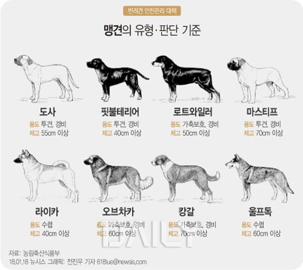 µ¿¹°º¸È£¹ý¿¡¼´Â ¸Í°ßÀÇ Á¾·ù¸¦ ´ÙÀ½°ú °°ÀÌ ±ÔÁ¤Çϰí ÀÖ´Ù. µµ»ç°ß°ú ±× ÀâÁ¾ÀÇ °³, ¾Æ¸Þ¸®Ä ÇͺÒÅ׸®¾î¿Í ±× ÀâÁ¾ÀÇ °³, ¾Æ¸Þ¸®Ä ½ºÅÂÆÛµå¼Å Å׸®¾î¿Í ±× ÀâÁ¾ÀÇ °³, ½ºÅÂÆÛµå¼Å º¼ Å׸®¾î¿Í ±× ÀâÁ¾ÀÇ °³, ·ÎÆ®¿ÍÀÏ·¯¿Í ±× ÀâÁ¾ÀÇ °³ÀÌ´Ù.
