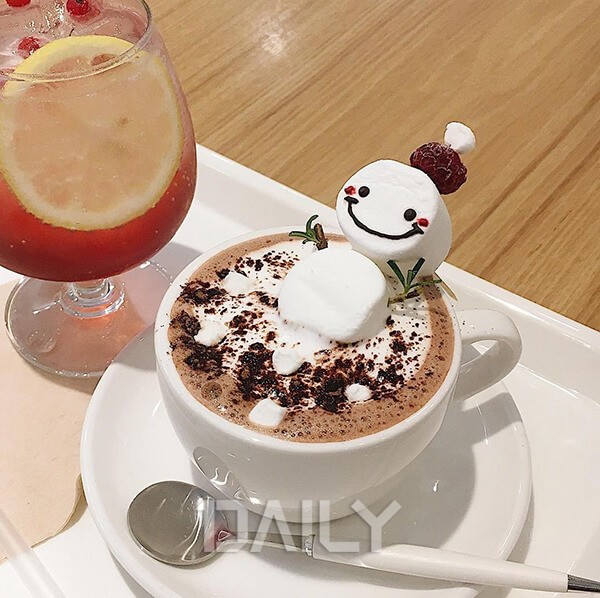 Àڱ׸¶ÇÑ Ä«ÆäÁö¸¸ ´Ã ¹®Àü¼º½Ã¸¦ ÀÌ·ç´Â ¸Þ¸®Æ®¸®¿¡´Â ±Í¿©¿î ´«»ç¶÷ÀÌ ¿Ã¶ó°£ ÇÖÃÊÄÚ°¡ ÀÖ´Ù. »¡°£ ¸ðÀÚ¸¦ ¾´ ÇÏ¾á ¸¶½Ã¸á·Î ´«»ç¶÷Àº ¾ó±¼ °¡µæ ÇÔ¹Ú¿ôÀ½À» Áþ°í ÀÖ°í, Çãºê ÀÙÀ¸·Î ¸¸µç Á¶±×¸¶ÇÑ ÆÈ±îÁö ±ú¾Ë °°Àº µðÅ×ÀÏ·Î »ç¶û½º·¯¿òÀ» ±Ø´ëȽÃŲ´Ù. º¸±â¸¸ ÇØµµ ¿ôÀ½ÀÌ ³ª°í Èú¸µÀÌ µÇ´Â ÇÖÃÊÄÚ¸¦ ¸Àº¸°í ½ÍÀ» ¶§ Á¦°ÝÀÌ´Ù.