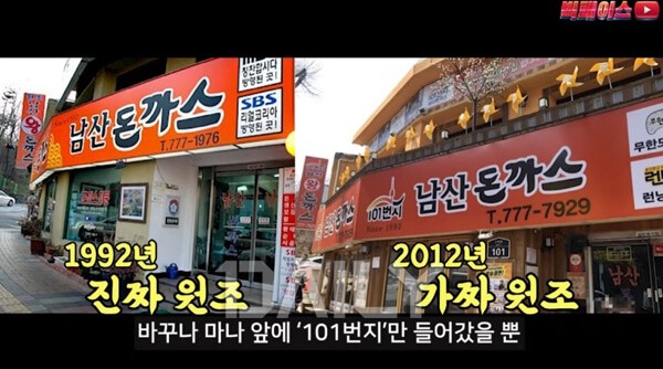 ±âÁ¸ÀÇ À§Ä¡¿¡¼ »ç¾÷À» ÇÏ´ø ¿øÁ¶ ³²»êµ·±î½º´Â ±ÙóÀÎ ¼ÒÆÄ·Î 23¹øÁö·Î »ç¾÷ÀåÀ» ¿Å°Ü, »óÈ£¸¦ ´Ù½Ã ³²»êµ·±î½º·Î ³»°É°í ¸ÅÀåÀ» ¿¾ú´Ù. ÇÏÁö¸¸ À̸¦ ¼ÒºñÀÚµéÀº ¾Ë ¹æ¹ýÀÌ ¸¶¶¥È÷ ¾ø¾ú´Ù. ¸ÅÀåÀ» ÀÚÁÖ Ã£´ø ´Ü°ñµéÀº ÀÌ·¯ÇÑ »ç¿¬À» ÀÏÂġ ¾Ë°í ÀÖ¾úÁö¸¸, ¾î¼´Ù ÇÑ ¹ø ¸ÅÀåÀ» ã´Â À̵éÀº 101¹øÁö ³²»êµ·±î½º¸¦ ¿øÁ¶·Î ÀνÄÇÏ°í ±æ°Ô ´Ã¾î¼± ÁÙ µÚ¿¡ ¼ ¿Ô´Ù. ÀÌ·¯ÇÑ »ç¿¬ÀÌ »ç¶÷µé¿¡°Ô ¾Ë·ÁÁö°Ô µÈ °ÍÀº À¯Æ©¹ö ¡®ºòÆäÀ̽º¡¯¸¦ ÅëÇØ¼¿´´Ù. ºòÆäÀ̽º´Â ¡®¿©·¯ºÐÀÌ ¾Ë°í ÀÖ´Â ³²»êµ·±î½º´Â ´Ù °ÅÁþ¸»¡¯À̶ó´Â Á¦¸ñÀÇ ¿µ»óÀ» ¿Ã·Á ÀÌ¿Í °°Àº »çÁ¤À» ÀüÇߴµ¥, ¿µ»ó¿¡¼ ±×´Â 101¹øÁö ³²»êµ·±î½º º»Á¡À» ¡®°Ç¹° ÁÖÀÎÀÌ ¿ø ½Ä´ç ÁÖÀÎÀ» ¸ô¾Æ³»°í ¿øÁ¶ Ç༼¸¦ ÇÏ´Â ½Ä´ç¡¯À̶ó ĪÇß´Ù. ±×´Â 101¹øÁö ³²»êµ·±î½º´Â ¿ø »ç¾÷ÀÚ°¡ ¿î¿µÇÒ ´ç½ÃÀÇ °£ÆÇ µðÀÚÀÎÀ» ±×´ë·Î »ç¿ëÇϰí, Since 1992¶ó´Â ¹®±¸µµ °í½º¶õÈ÷ ³²°Üµ×´Ù´Â Á¡À» ÁöÀûÇß´Ù.