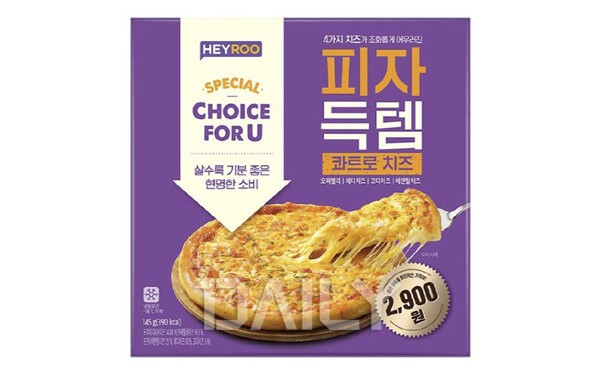 CU ÆíÀÇÁ¡¿¡¼´Â 2,900¿øÀÇ ÆÄ°ÝÀûÀÎ °¡°ÝÀÇ ³Ãµ¿ÇÇÀÚ¸¦ ¸¸³¯ ¼ö ÀÖ´Ù. ¡®ÇìÀÌ·ç ÇÇÀÚµæÅÛ ÄâÆ®·Î Ä¡Á·Î, °¡°ÝÀ¸·Î´Â »ó»óÇÒ ¼ö ¾øÀ» Á¤µµ·Î dzºÎÇÑ Ä¡Áî°¡ Ư¡ÀÌ´Ù. »çÀÌÁî´Â 7ÀÎÄ¡ Á¤µµ¸ç, Áß·®Àº 145gÀÌ´Ù. ÇÇÀÚ µµ¿ì´Â ÃÖ´ëÇÑ ¾ã°Ô ¸¸µé¾î ¹Ù»èÇÔÀ» »ì·ÈÀ¸¸ç, Ä¡Áî´Â ¿©Å¸ ³Ãµ¿ÇÇÀÚ ´ëºñ ¾à 20%p ¸¸Å ³ô¿© ³ôÀº Ä¡Áî ÇÔÀ¯À²À» ÀÚ¶ûÇÑ´Ù. CUÀÇ ´Ù¸¥ ³Ãµ¿ÇÇÀÚ ´ëºñ °°Àº Áß·® ±âÁØ ÃÖ´ë 40%°¡·® Àú·ÅÇÑ Á¦Ç°ÀÌ´Ù.