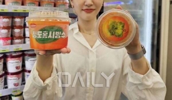 ÆíÀÇÁ¡ CU´Â °æ»óºÏµµ ûµµ±ºÀÇ Æ¯»ê¹°ÀÎ È«½Ã¸¦ Ȱ¿ëÇÑ ºù¼ö¸¦ Ãâ½ÃÇß´Ù. ¡®Ã»µµÈ«½Ãºù¼ö¡¯¶ó´Â À̸§ÀÇ Á¦Ç°À¸·Î, ÃÖ»ó´Ü¿¡´Â È«½Ã Ç»·¹ ½Ã·´À» ¹èÄ¡ÇØ ´ÞÄÞÇÑ ¸ÀÀ» °Á¶Çß´Ù. ±× ¾Æ·¡·Î´Â È«½Ã °úÁóÀ» ³Ö°í °ö°Ô °£ ¾óÀ½ ¾Ë°»ÀÌ¿Í ºÎµå·¯¿î ½Ä°¨ÀÇ ¿ìÀ¯ ¾óÀ½À» 2´Ü°ú 3´ÜÀ¸·Î ½×¾Ò´Ù. »ì¦ ³ì¿©¼ ¼¯¾î ¸ÔÀ¸¸é È«½ÃÀÇ ´ÞÄÞÇÔÀÌ ¹è°¡µÈ´Ù. Àü±¹ CU ÆíÀÇÁ¡ ¸ÅÀå¿¡¼ ¸¸³¯ ¼ö ÀÖÀ¸¸ç, °¡°ÝÀº 3,500¿øÀÌ´Ù.