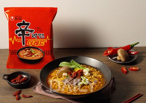 ³ó½ÉÀº ½Å¶ó¸éÀÇ ¸Å¿î¸ÀÀ» °ÈÇÑ ¡®½Å¶ó¸é ´õ ·¹µå¡¯¸¦ ÇÑÁ¤ÆÇÀ¸·Î Ãâ½ÃÇß´Ù. ½Å¶ó¸é ´õ ·¹µå´Â ½ºÄÚºô Áö¼ö°í 7500SHU·Î, ±âÁ¸ ½Å¶ó¸éÀÇ 2¹è°¡ ³Ñ´Â´Ù. ³ó½ÉÀÇ ¶ó¸é Áß¿¡¼´Â °¡Àå ¸Å¿î Á¦Ç°ÀÎ ¾Þ±×¸® ³Ê±¸¸®º¸´Ùµµ ¸Ê´Ù. ½Å¶ó¸é º»¿¬ÀÇ ¾ÆÀ̵§Æ¼Æ¼¸¦ Áö۸é¼, º¸´Ù °ÇÑ ¸Å¿î¸ÀÀ» ¼±»çÇÏ´Â µ¥¿¡ ÁßÁ¡À» µÎ°í °³¹ßµÈ Á¦Ç°ÀÌ´Ù. û¾ç°íÃßÀÇ ÇÔ·®À» ´Ã·Á ¸Å¿î¸ÀÀÇ °µµ¸¦ ³ôÀ̰í, ¼Ò°í±â¿Í Ç¥°í¹ö¼¸ µî ÁøÇÑ À°¼öÀÇ °¨Ä¥¸ÀÀ» ³»´Â Àç·á¸¦ º¸°Çß´Ù. 4ºÀÁö ¹À½ ÆÐŰÁöÀÇ °¡°ÝÀº 5,300¿øÀÌ´Ù.