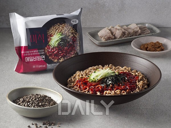 Çϸ²Àº ¡®´õ¹Ì½Ä ¸Þ¹Ðºñºö¸é¡¯À» ÇÑÁ¤ÆÇÀ¸·Î Ãâ½ÃÇß´Ù. ´õ¹Ì½Ä¸¸ÀÇ ºñ¹ý ¾ç³äÀåÀ» Ȱ¿ëÇÑ Á¦Ç°ÀÌ´Ù. ¸é¿¡´Â ¸Þ¹ÐÀÇ ÇÔ·®À» ³ô¿© °í¼ÒÇÔ°ú Â̱êÇϰí ÅʱÛÇÑ ½Ä°¨À» »ì·È´Ù. ¸Þ¹Ð¸éÀº ¸Þ¹Ð ÇÔ·®ÀÌ ½ÃÁß Á¦Ç°ÀÇ Æò±Õ ÇÔÀ¯·®º¸´Ù ³ôÀº 5.5%·Î, Çâ±ßÇÏ°í °í¼ÒÇÑ ¸Þ¹ÐÀÇ Ç³¹Ì¸¦ ²ø¾î¿Ã·È´Ù. ±â¸§¿¡ Æ¢±âÁö ¾Ê°í Çϸ²¸¸ÀÇ Á¦Æ®³ëÁñ °ø¹ýÀ¸·Î °ÇÁ¶½ÃŲ ¸éÀ» Ȱ¿ëÇß´Ù. ºÀÁö¸é ±âÁØ °³´ç ÆÇ¸Å°¡´Â 1,100¿øÀÌ´Ù.
