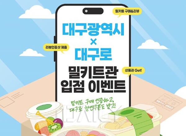 ´ë±¸½Ã´Â Áö¿ª °ø°ø¹è´Þ ¾ÛÀÎ ´ë±¸·Î·Î ¡®´ë±¸ ¹ÐŰƮ 100¼±¡¯À» ÆÇ¸ÅÇϰí ÀÖ´Ù. ´ë±¸½Ã ¿Ü½Ä¾÷¼Ò ÄÁ¼³ÆÃ Áö¿ø»ç¾÷À¸·Î ¼±Á¤µÈ ´ë±¸ ¸ÀÁý 100°÷ÀÇ ´ëÇ¥ ¸Þ´º¸¦ ¹ÐŰƮ·Î »óǰÈÇØ Ãâ½ÃÇÑ °ÍÀÌ´Ù. Áö¿ª ¹ÐŰƮ ¾÷üµéÀÇ ´ë±¸·Î ÀÔÁ¡À» ÅëÇØ, ½Ã¹ÎµéÀÇ ¹ÐŰƮ ±¸ÀÔ Á¢±Ù¼º ¹× »óǰ ÀÎÁöµµ¸¦ ¿Ã¸®°íÀÚ ±âȹµÈ »ç¾÷ÀÌ´Ù. ´ë±¸·Î·Î ¹ÐŰƮ¸¦ ÁÖ¹®ÇÏ´Â ¼±Âø¼ø 1,000¸í¿¡°Ô´Â ´ë±¸·Î ÇÒÀÎ ÄíÆùµµ Áö±ÞµÈ´Ù.