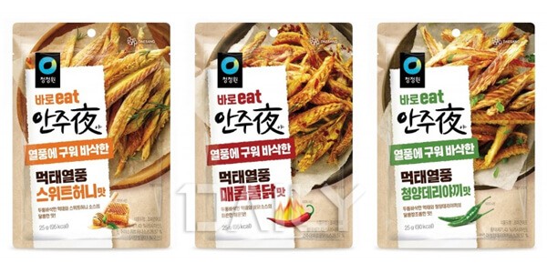 ´ë»ó ûÁ¤¿øÀº ¿äÁò ÈÁ¦ÀÎ ¸ÔŸ¦ Ȱ¿ëÇÑ ¡®¾ÈÁÖ¾ß ¸ÔÅ¿dz¡¯ 3Á¾À» Ãâ½ÃÇϸç, ±×ÁßÀÇ Çϳª·Î û¾ç°íÃ߸¦ Ȱ¿ëÇß´Ù. ¾ÈÁÖ¾ß ¸ÔÅ¿dzÀº ¸ÆÁÖ ¾ÈÁÖ·Î ¸¹Àº À̵éÀÌ ¼±È£ÇÏ´Â ¸ÔŸ¦ ´ºÆ®·Î Æ®·»µå¿¡ ¸ÂÃç ÀçÇØ¼®ÇÑ Á¦Ç°ÀÌ´Ù. µÎÅùÇÑ È²Å¸¦ ±¸¿ö³» ¹Ù»èÇÑ ½Ä°¨ÀÌ Æ¯Â¡À̸ç, ÇÑÀÔ¿¡ ¸Ô±â ÁÁÀº Å©±â·Î Á¦Ç°À» ¼ÕÁúÇÑ µÚ ƯÁ¦ ¼Ò½º·Î ±¸¿ö º°µµÀÇ ¼Ò½º ¾øÀ̵µ °£´ÜÇÏ°Ô Áñ±æ ¼ö ÀÖ´Ù. û¾ç°íÃ߸¦ Ȱ¿ëÇÑ Á¦Ç°Àº ¡®¾ÈÁÖ¾ß ¸ÔÅ¿dz û¾çµ¥¸®¾ß³¢¸À¡¯ÀÌ´Ù. ´ëÇü¸¶Æ® ±âÁØ ÆÐŰÁö´ç ÆÇ¸Å°¡´Â 3,180¿øÀÌ´Ù.