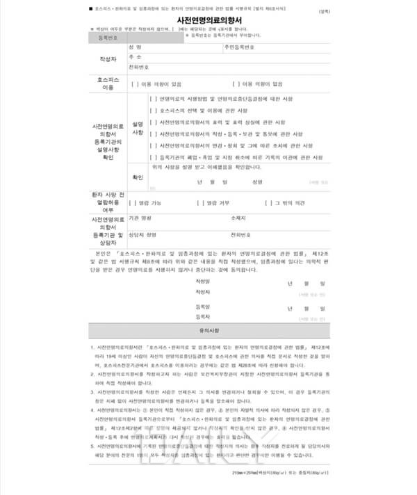 ¡®¿¬¸í ÀÇ·á °áÁ¤¡¯Àº ÀÓÁ¾ ´Ü°èÀÇ È¯ÀÚ°¡ ½ÉÆó¼Ò»ý¼ú, Ç÷¾× Åõ¼®, ÀΰøÈ£Èí±â Âø¿ë µîÀ» Áß´ÜÇϰųª °ÅºÎÇÒ ¼ö ÀÖµµ·Ï ÇÑ Á¦µµÀÔ´Ï´Ù. ´©±¸µç °Ç°ÇÒ ¶§ »çÀü ¿¬¸í Ä¡·á Áß´Ü ÀÇÇ⼸¦ µî·ÏÇÒ ¼ö ÀÖ°í, ÀÓÁ¾ ´Ü°èÀÇ È¯ÀÚ¶ó¸é ´ã´ç Àǻ翡°Ô ¿¬¸í Ä¡·á¸¦ ¹Þ°í ½ÍÁö ¾Ê´Ù´Â Àǻ縦 Àü´ÞÇÒ ¼ö ÀÖ½À´Ï´Ù. À£´ÙÀ×À» °í¹ÎÇϰí ÀÖ´Ù¸é »çÀü ¿¬¸í Ä¡·á Áß´Ü ÀÇÇ⼸¦ °ËÅäÇØº¸´Â °Íµµ Á×À½À» ¹Þ¾ÆµéÀ̴ ù°ÉÀ½ÀÌ µÉ ¼ö ÀÖ½À´Ï´Ù.