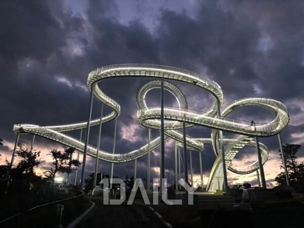 ¿øÁÖÀÇ ¡®¼Ò±Ý»ê ±×·£µå¹ë¸®¡¯´Â ¿ì¸®³ª¶ó¿¡¼ ¸¸³ª±â Èûµç ±æ´Ù¶õ Ãâ··´Ù¸®¸¦ ÀÌ¿ëÇÒ ¼ö ÀÖ´Â °÷ÀÌ´Ù. °ÝÀÚÇüÀ¸·Î ²Ù¹Î ¹Ù´ÚÀ¸·Î ¹ß¾Æ·¡°¡ ÈÍÈ÷ ³»·Á´Ùº¸ÀÌ´Â Ãâ··´Ù¸®´Ù. ´Ù¸®¸¦ °Ç³Ê¸é ¼Ò±Ý»ê Á¤»ó ÂÊÀ¸·Î Æí¾ÈÇÏ°Ô »êÃ¥À» Áñ±æ ¼ö ÀÖ´Â »êÃ¥·Î°¡ ÀÖÀ¸¸ç, ÀÌ¾î¼ ¼Ò±ÝÀܵµ·Î ¿¬°áµÈ´Ù. Áß±¹ ÀåÀÚÁ¦ÀÇ À¯¸®Àܵµ ¸øÁö¾Ê°Ô ¾Æ½½¾Æ½½ÇÑ ±æ·Î ²ÅÈù´Ù. 155m »ó°ø¿¡ ¼¼¿öÁø ½ºÄ«ÀÌŸ¿öµµ º¼°Å¸®·Î À¯¸íÇÏ´Ù.