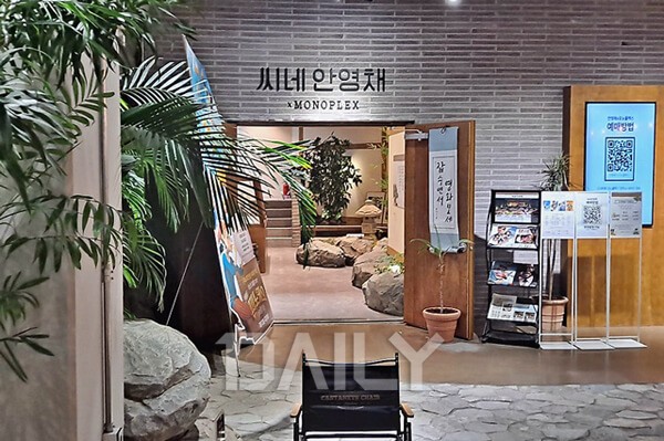 ȼº µ¿Åº È£¼ö°ø¿ø ¿· ¶óÅ©¸ù ÁöÇÏ 1Ãþ¿¡´Â ÇÑ¿Á ÄܼÁÆ®ÀÇ ¿µÈ°ü ¡®¾È¿µÃ¤ X ¸ð³ëÇ÷º½º¡¯°¡ ÀÖ´Ù. ±¹³» À¯ÀÏÀÇ ÇÑ¿Á ÄܼÁÆ® »ó¿µ°üÀ¸·Î, °£´ÜÇÑ ½Ä»ç¿Í ÇÔ²² ¿µÈ¸¦ Áñ±æ ¼ö ÀÖ´Â ´ÙÀÌ´× ½Ã³×¸¶´Ù. ÃÖ´ë 40¸í±îÁö ¼ö¿ëÀÌ °¡´ÉÇÑ ±ØÀåÀ¸·Î, Á¼® °£ °£°ÝÀÌ ³Ð°í Á¼®º° °ø°£ÀÌ ÃæºÐÇØ ÄèÀûÇÏ°Ô ¿µÈ¸¦ °¨»óÇÒ ¼ö ÀÖ´Ù. ¿µÈ°ü¿¡ µé¾î¼±â Àü¿¡ ÀÖ´Â ¸Þ¸®±×¶ó¿îµå °ø°£¿¡´Â °íÁî³ËÇÑ ÇÑ¿Á Á¤¿øÀ» ¿¬»óÄÉ ÇÏ´Â ÀÎÅ׸®¾î°¡ Àû¿ëµÅ ÀÖ´Ù.